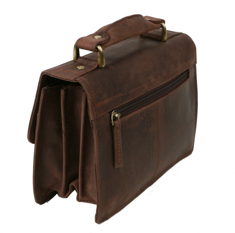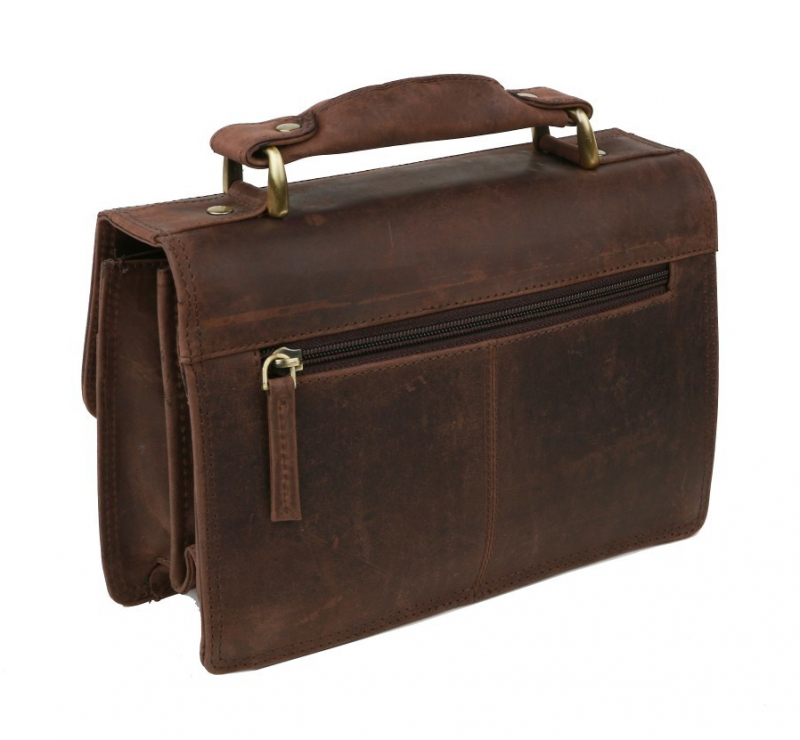 Ponúkame etue na doklady - pánsku koženú tašku väčšieho typu s viacerými vnútornými priehradkami. Masívna koža v hladko-brúsenej povrchovej úprave, starožitná hnedá mramorovaná. Nosenie za hornú rúčku, alebo bočnú odnímateľnú rúčku. Zapínanie na kovovú zliatinovú pracku (bez uzamykania).