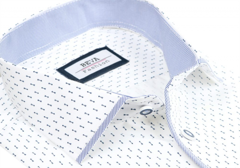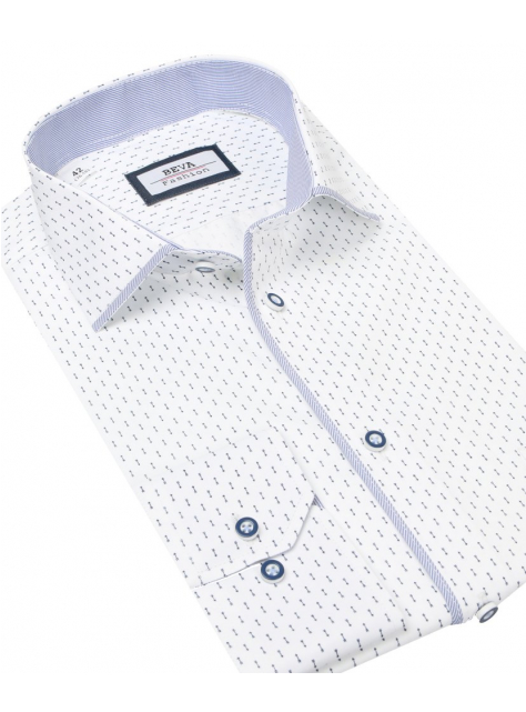 Pánska business košeľa BEVA FASHION na každý deň v SLIM strihu. Moderná košeľa s dlhým rukávom a kontrastným lemovaním, strih na výšku postavy 176 - 182 cm.
