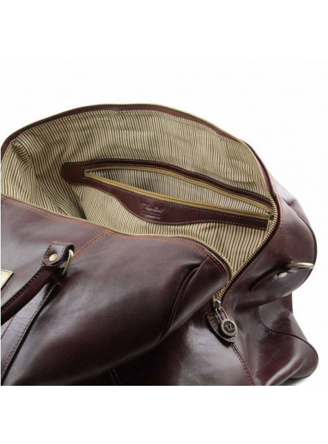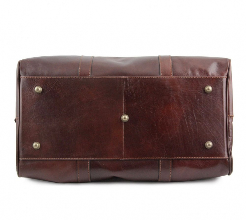 V spodnej časti 5 kovových ochranných podstavcov. Kožená cestovná taška rozmermi vyhovuje ako príručná batožina do lietadla (u niektorých leteckých spoločností).