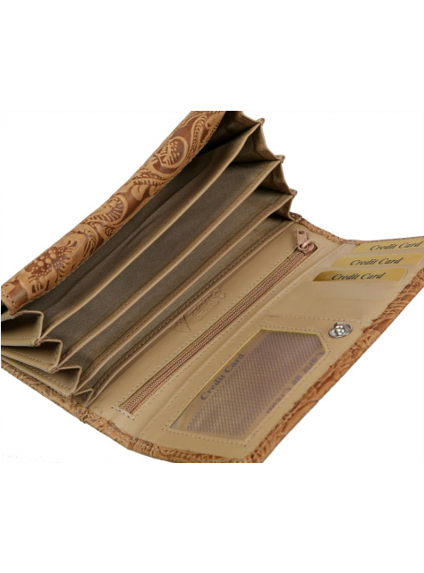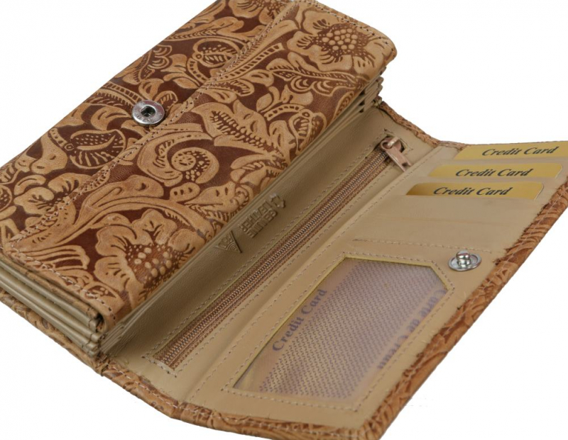 Exkluzívna dámska peňaženka MERCUCIO s potlačou. Obľúbený listový formát, prehľadný pre karty a doklady, vyhovuje aj pre starší typ dokladov.