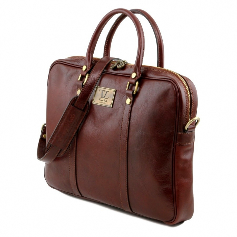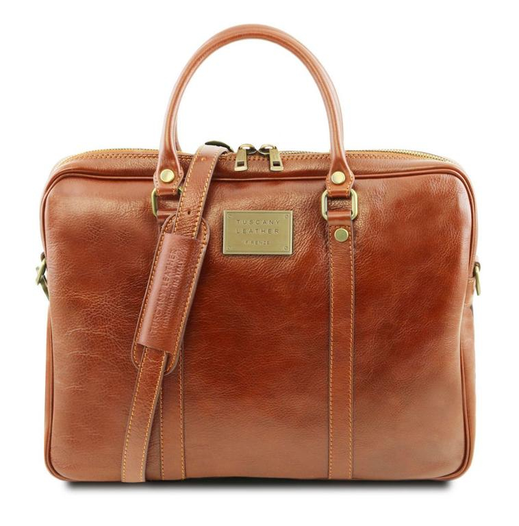 Luxusná taška na notebook z toskánskej kože z kolekcie PRATO od TUSCANY LEATHER. Kožená taška s jednokomorovým priestorom pre notebook a dokumenty formátu A4.