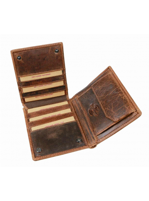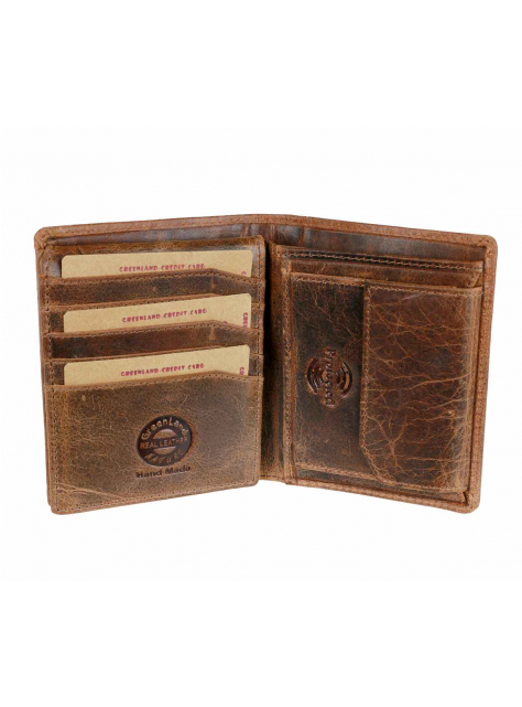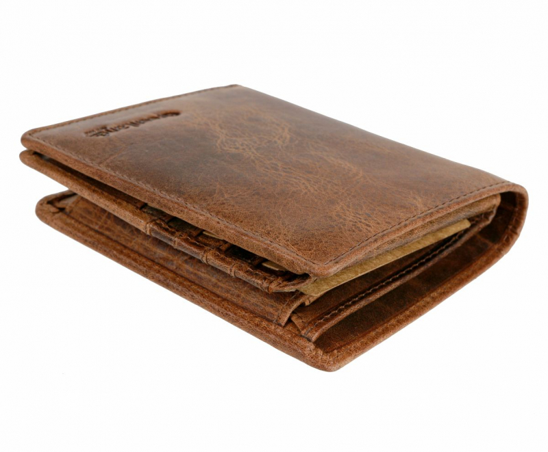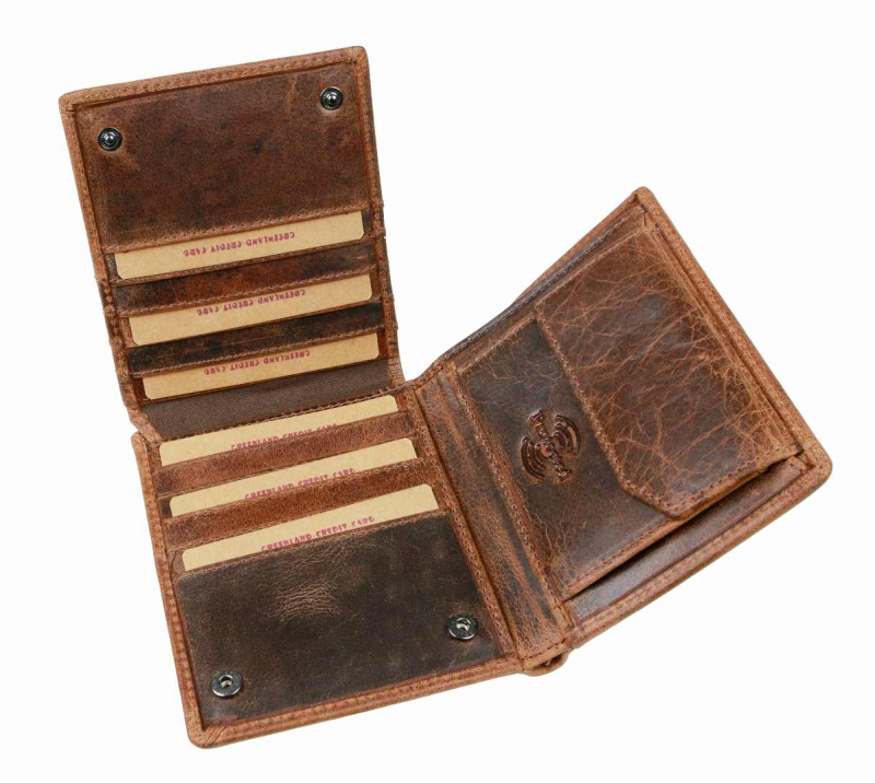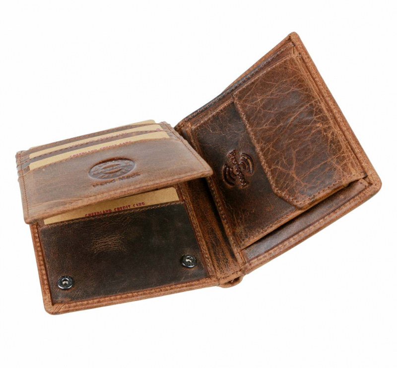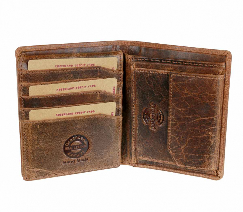 Pánska peňaženka s technológiou RFID značky GREENLAND NATURE. Kartová časť - priestor pre karty sa nachádza na ľavej strane a je zopnutý kovovými patentmi, čím poskytuje ochranu Vašim kartám pred vypadnutím. Peňaženka vyhovuje aj dokladom staršieho typu.