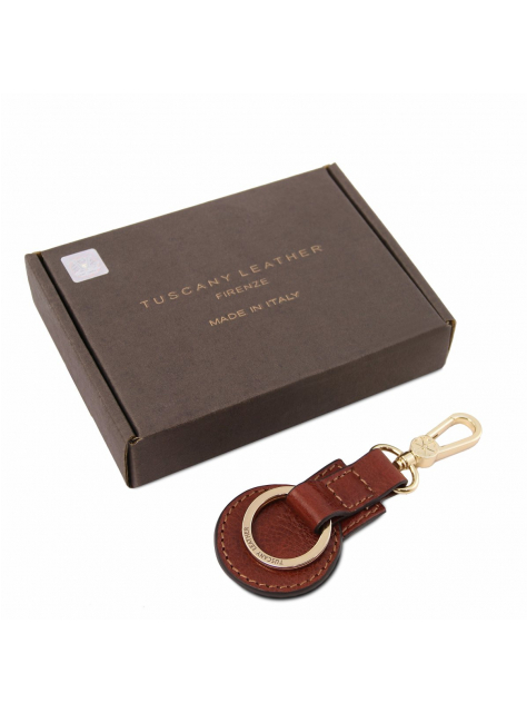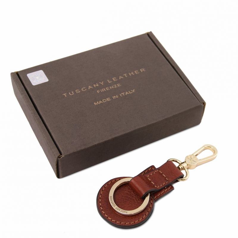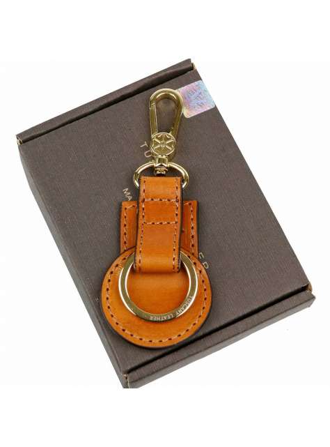 Exkluzívny masívny kožený prívesok na kľúče talianskej značky TUSCANY LEATHER. Farba kože ROSSO - červená v odtieni zrelých malín.