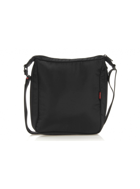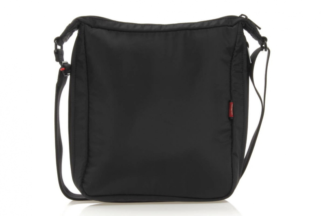 Vyrobená z kvalitného vodeodolného nylonu so striebristým odleskom. Súčasťou tašky je ozdobný prívesok.