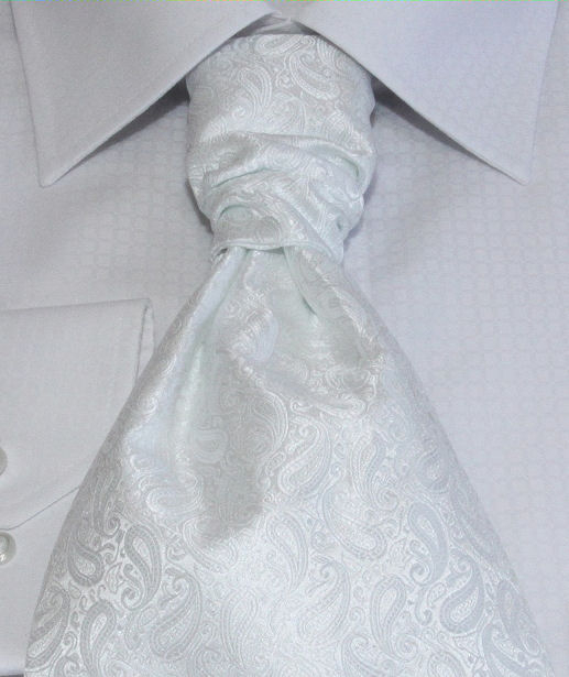 Francúzska kravata biela s kašmírovým vzorom 3000-32