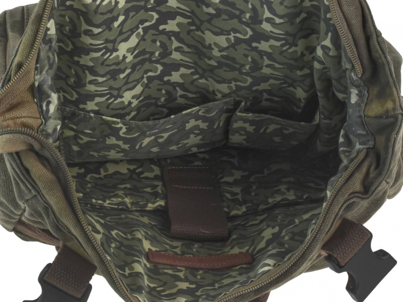 Priestranný hlavný priestor pre formáty A4, obsahuje polstrovanú priehradku na tablet formátu A4 s uzatváraním prackou na suchý zips. Zadná stena a dno s masívnym čalúnením. 100%-ná bavlnená podšívka s maskáčovým vzorom.