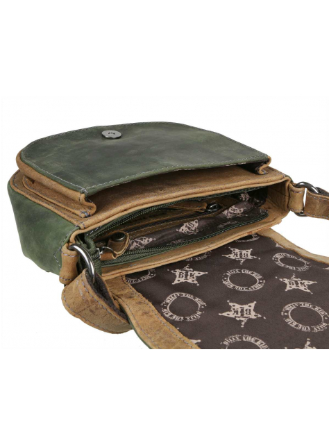 Dámska kožená kabela na rameno GREENBURRY - kolekcia BILLY THE KID. Priestranný úložný priestor s jednou hlavnou vnútornou komorou a príručnou prednou kapsou. Popruh pevne uchytený nastaviteľný od 80 do 150 cm, š. 2,5cm.