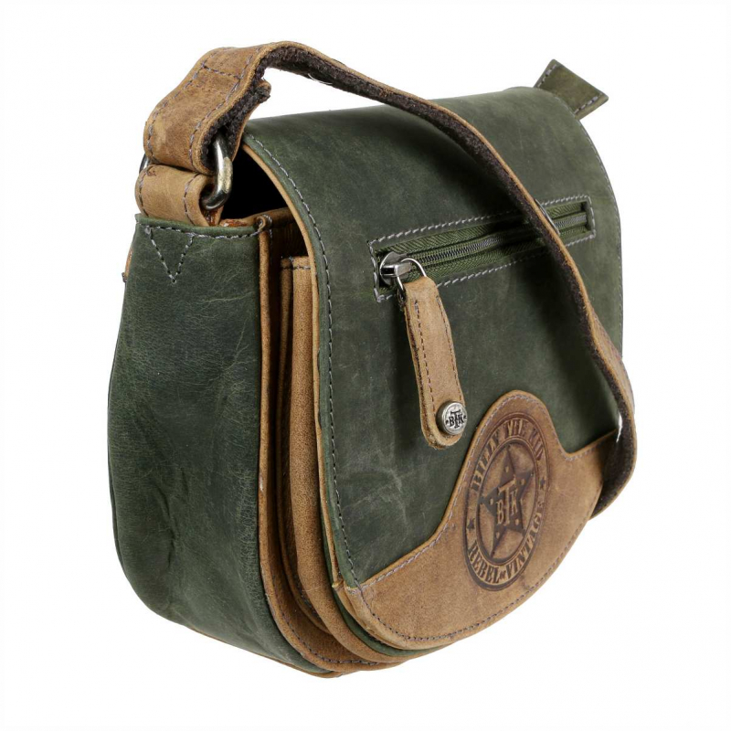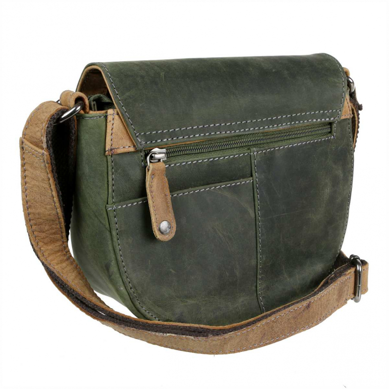 Zaoblená kabelka pre univerzálny ženský štýl z kvalitnej masívnej kože - odľahčenej pre pohodlné nosenie, odolnej, prispôsobenej pre dlhú životnosť a vyššiu záťaž. Jemným celoobvodovým vystužením si kabelka zachováva plný a elegantný tvar aj bez výpne. Hnedá prírodná a zelená olivová farebná úprava. Použité kvalitné komponenty, kovové časti z masívneho kovu v úprave farby bronz s patinou. Súčasťou je štýlový kožený prívesok na kľúče.