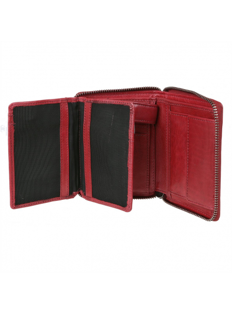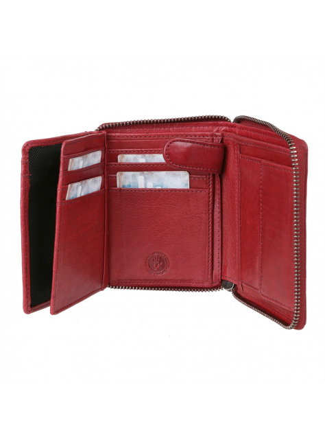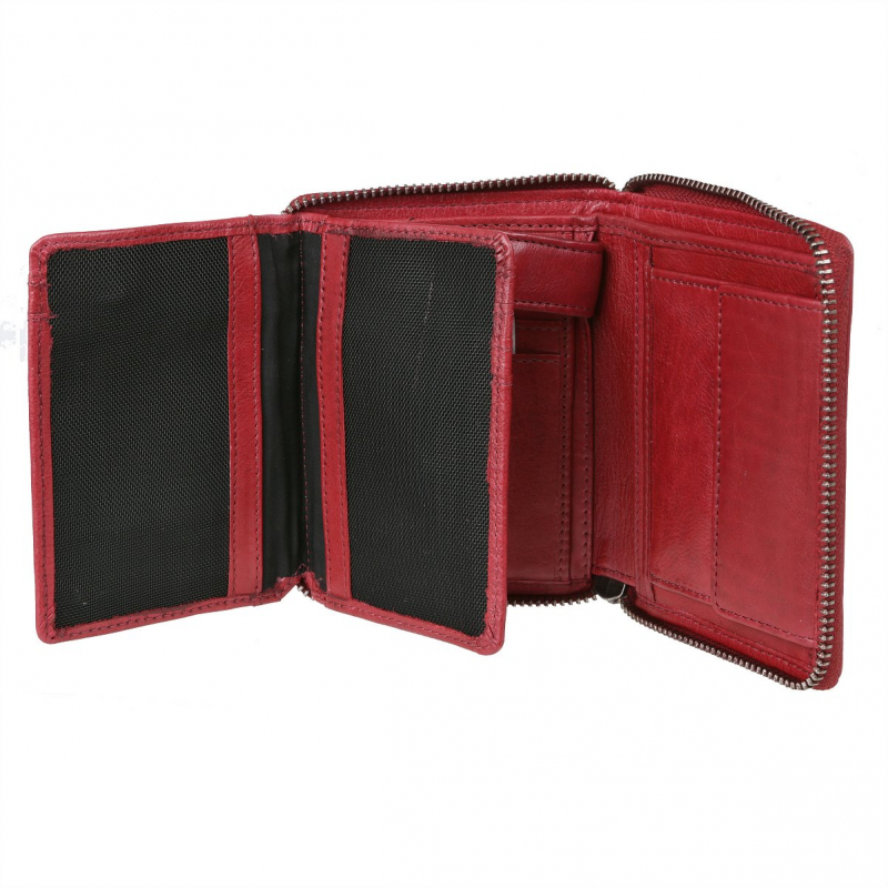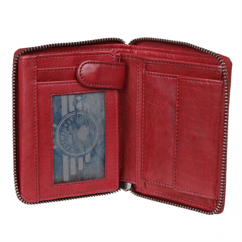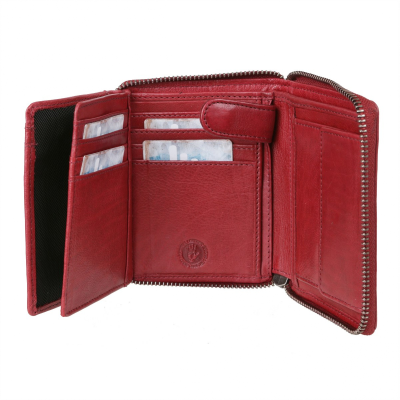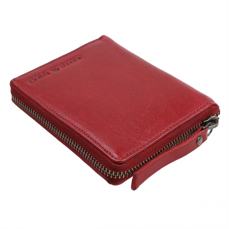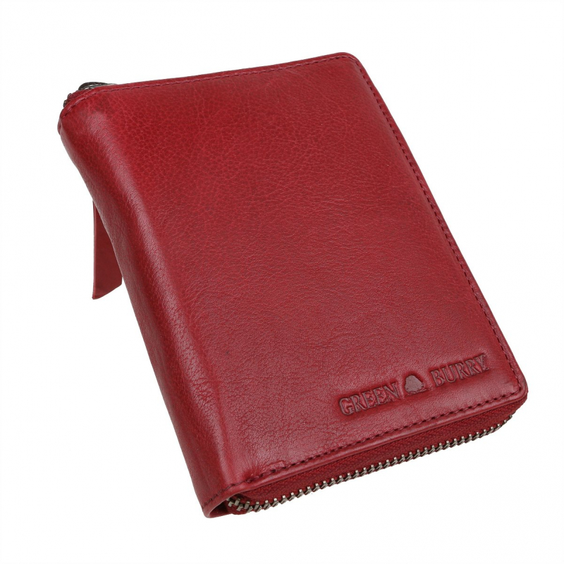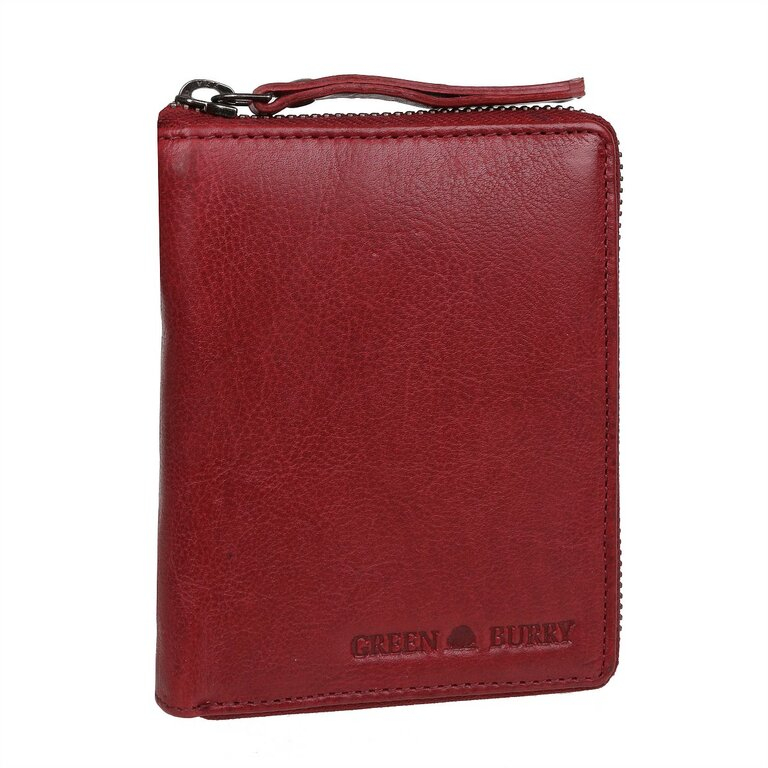 Peňaženka so zipsovým uzatváraním značky GreenBurry z kvalitnej a exkluzívne spracovanej kože (ručne spracovaná) - akostná, masívna a zmäkčená koža v luxusnom červenom odtieni rubínu.