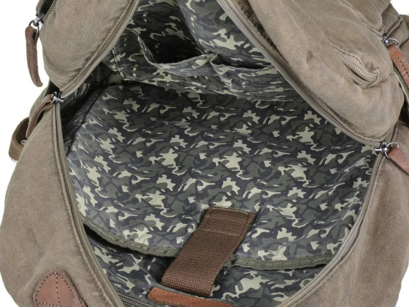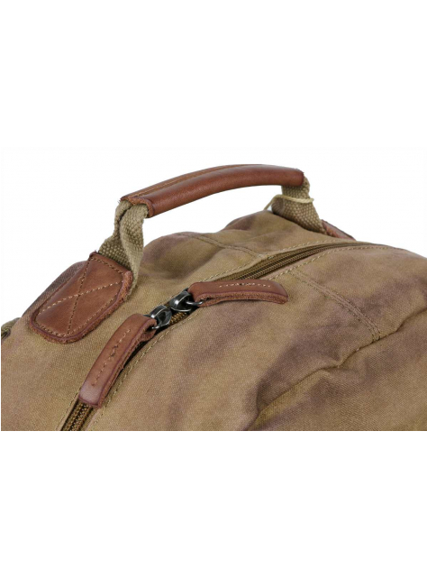 Vyrobený z canvasu - pevného materiálu s vysokou odolnosťou - ručne opracovaný a dokončovaný povrch dodáva taške nezameniteľný individuálny charakter. Kvalitné precízne vypracovanie, pevné plátno so zrnitou štruktúrou, zipsové bežce s koženými úchytmi, masívne polstrované popruhy, rukoväť z kože a hustotkaného canvasu.