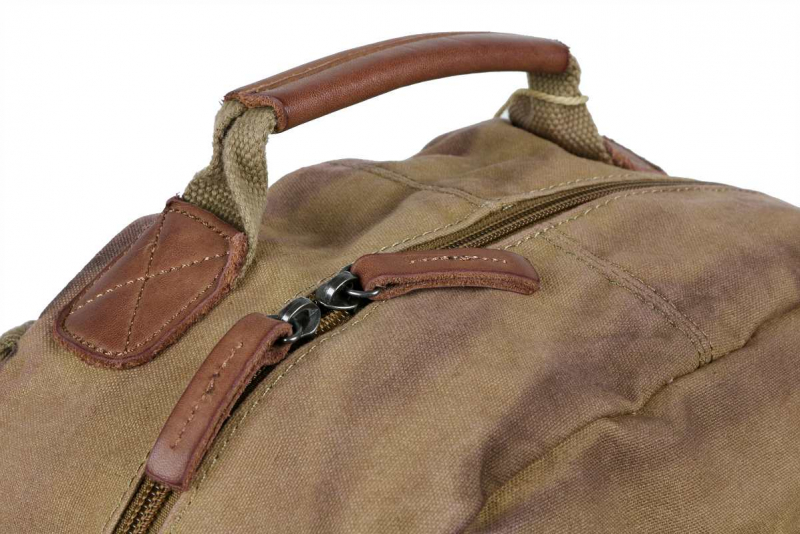 Vyrobený z canvasu - pevného materiálu s vysokou odolnosťou - ručne opracovaný a dokončovaný povrch dodáva taške nezameniteľný individuálny charakter. Kvalitné precízne vypracovanie, pevné plátno so zrnitou štruktúrou, zipsové bežce s koženými úchytmi, masívne polstrované popruhy, rukoväť z kože a hustotkaného canvasu.