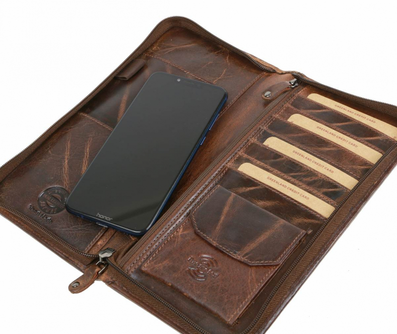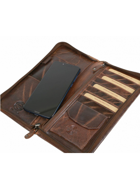 Kvalitné cestovné puzdro - peňaženka z masívnej kože v odľahčenom prevedení - peňaženka na smartfón, osobné a cestovné doklady, karty, bankovky, mince a pero. Uzatváranie na zips, steny s tvrdou výstužou.