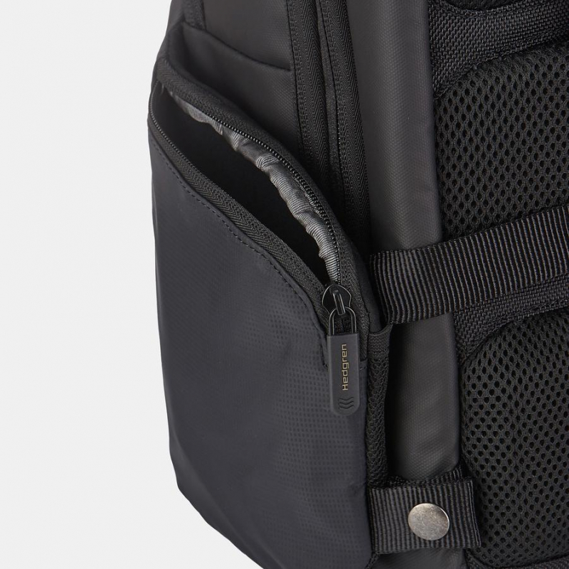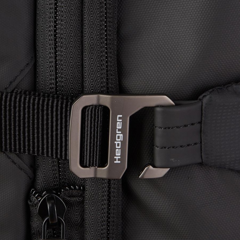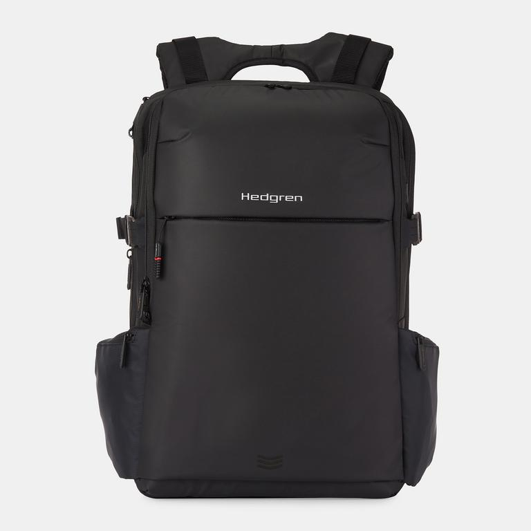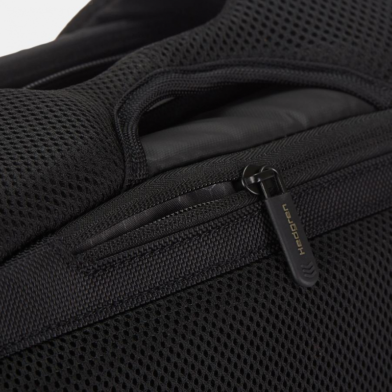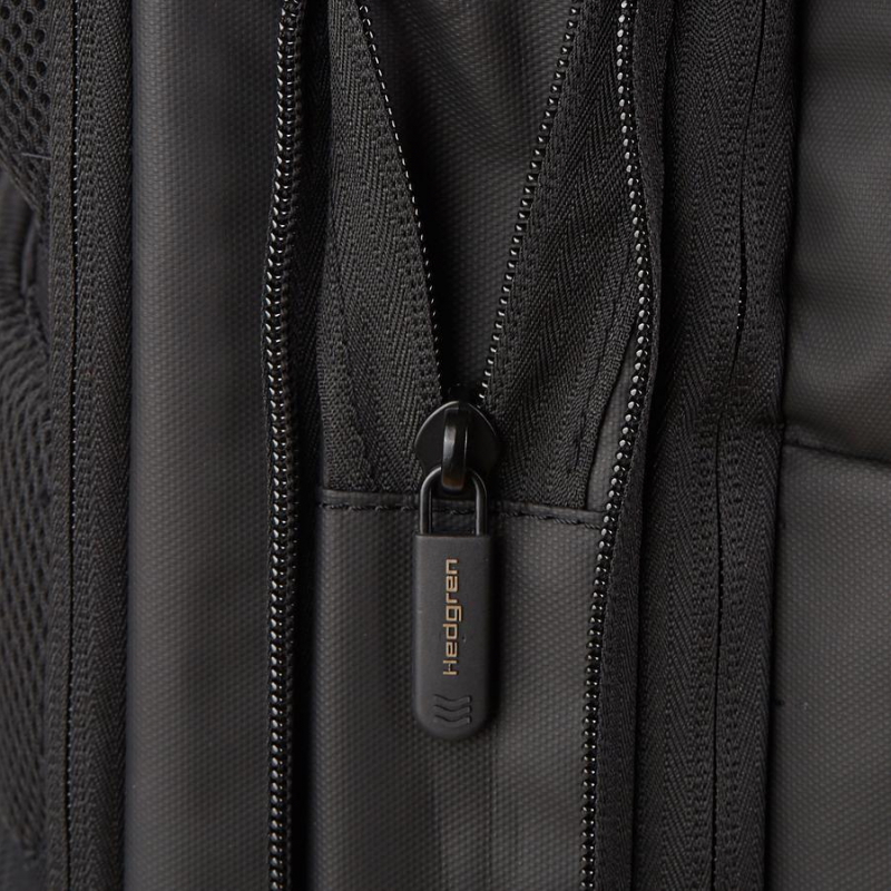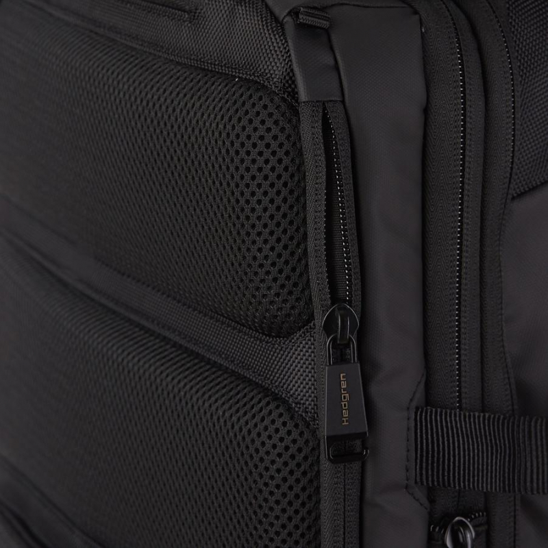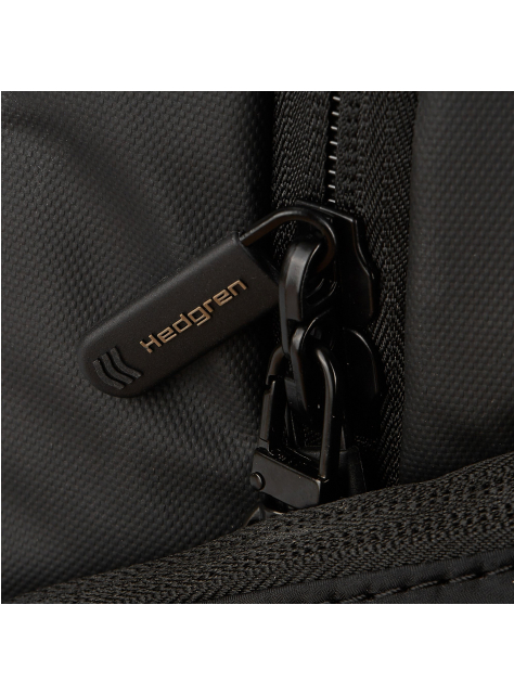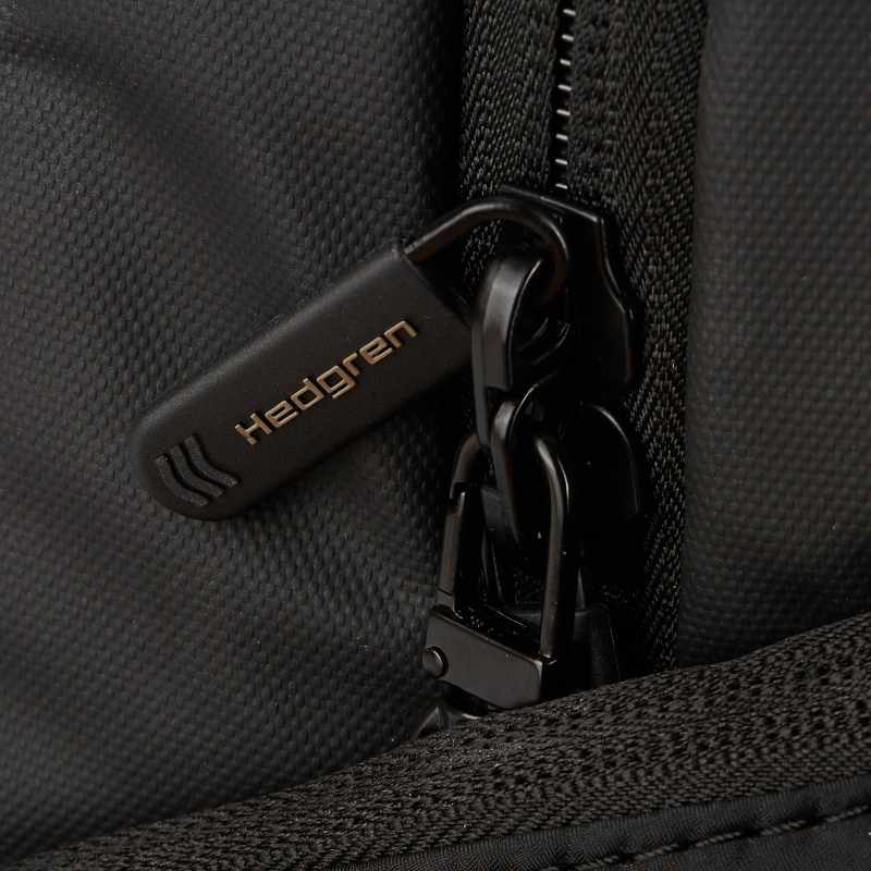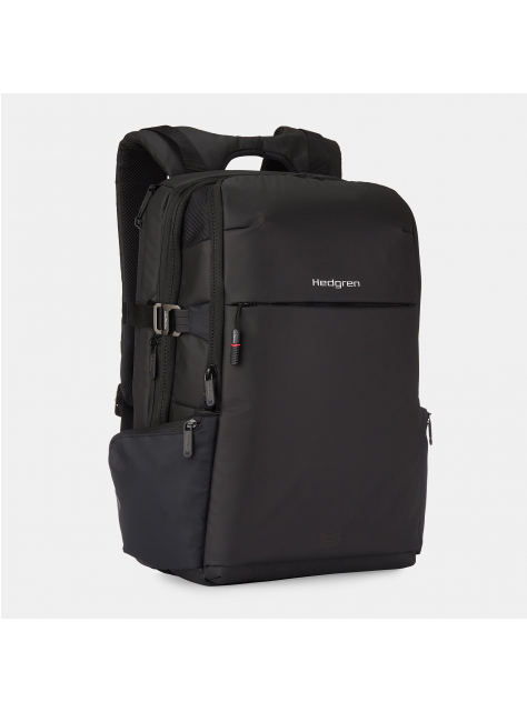 Štýlový batoh na notebook, tablet a dokumenty A4 značky HEDGREN v sofistikovanom dizajne s precíznym vypracovaním - prevedenie zo špeciálneho vodoodpudivého nylonu (podobný koženke) v exkluzívnom spracovaní. Praktický, kvalitný materiál, odolný záťaži v odľahčenom spracovaní, jednoduchý pre bežnú údržbu. Hrubšie polstrovanie po celom obvode vrátane vnútorných stien, zadná stena s masívnym polstrovaním a ergonomicky komfortným vytvarovaním. V chrbtovej časti a popruhoch systém odvetrávania. Nastaviteľné polstrované popruhy na ramená. Elegantné vnútorne prevedenie.