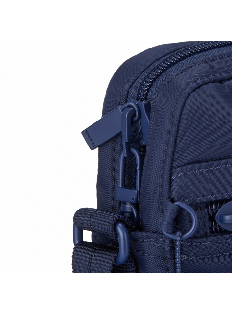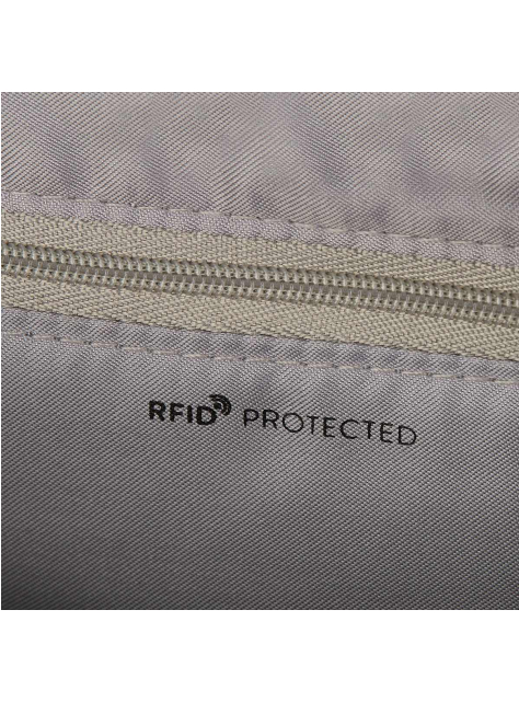 hlavná komora - voľný priestor s postranným RFID priečinkom v 17 x š 15 cm, otvorená postranná kapsa 15x11 cm (na smartfón a pod), prívesok s karabínkou pre uchytenie kľúčov