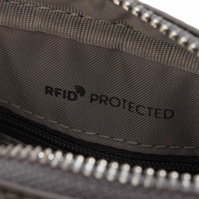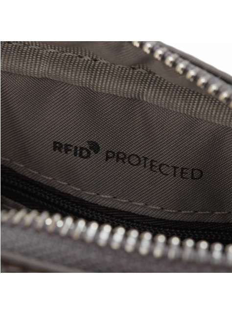 hlavná komora - voľný priestor s postranným RFID priečinkom v 10 x š 15 cm, otvorená postranná kapsa 16x10 cm (na smartfón a pod)
