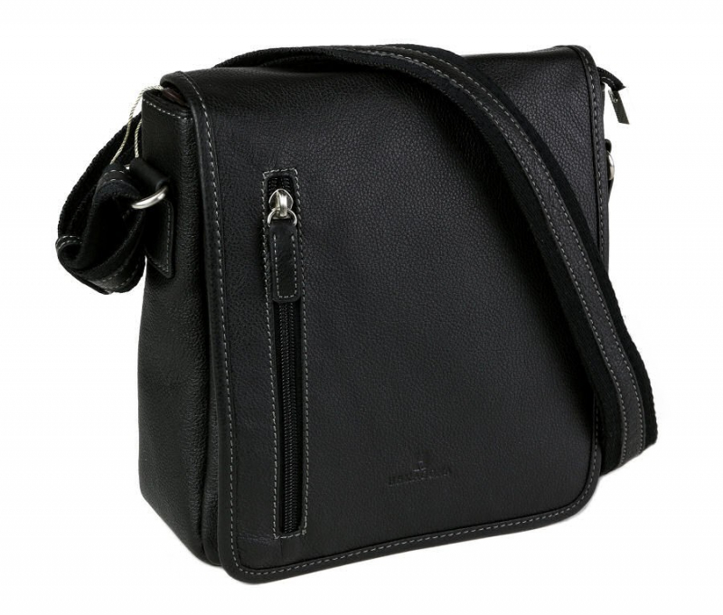 Kožená taška na rameno zn. HEXAGONA - príručný formát s poklopom uzatváraným na magnet, vnútro uzatvorené zipsom. Odľahčené prevedenie, kvalitné komponenty a prepracované detaily. Unisex model.