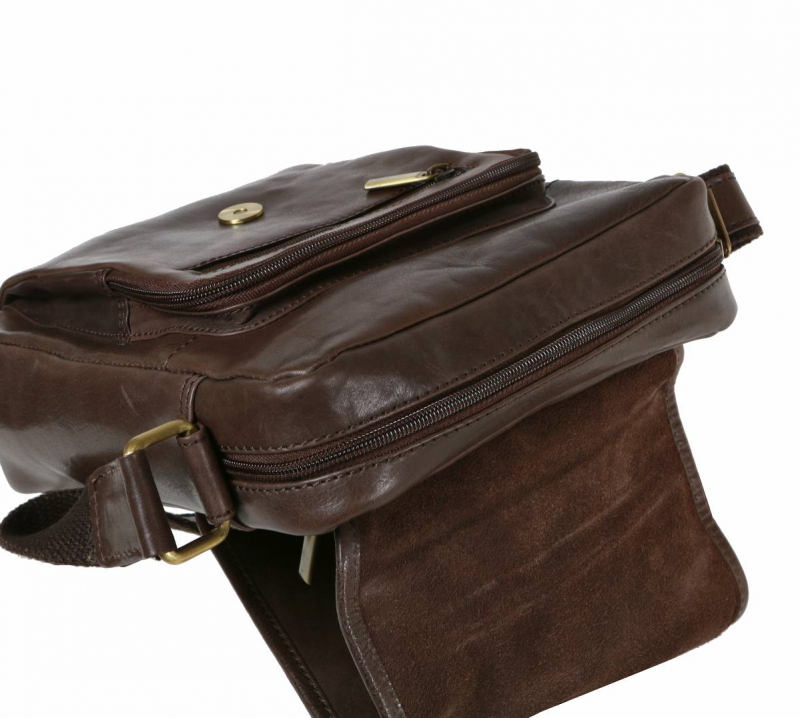 Priečinky sú zabezpečené uzatváraním na zips, chlopňa na magnetický patent. Ramenný popruh z kože a pevnej textílie - nastaviteľný až do dĺžky 155 cm, širka je 3 cm.