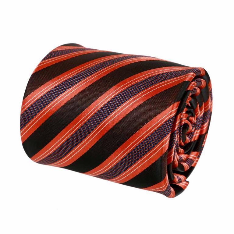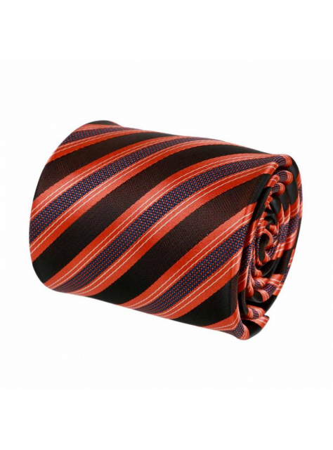 Hnedá kravata s oranžovými prúžkami 8 cm