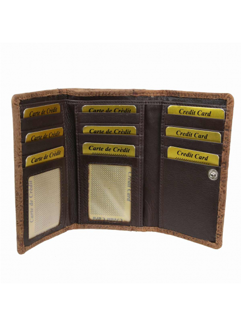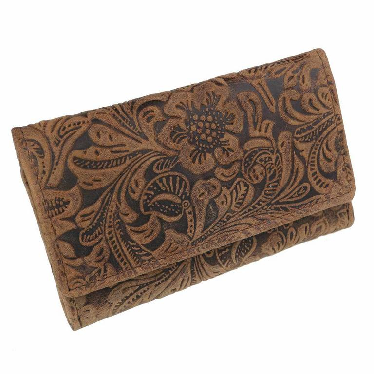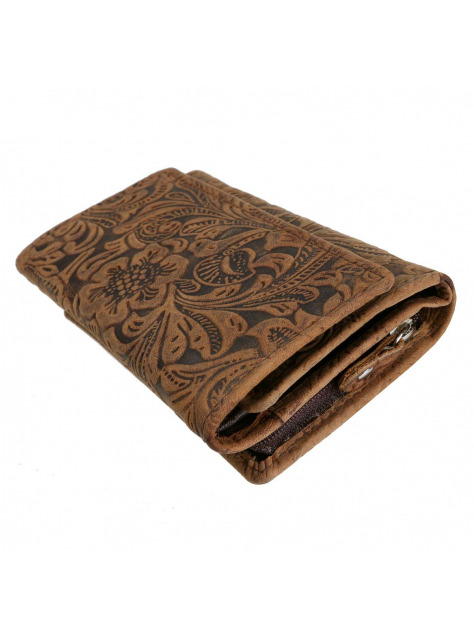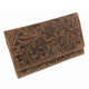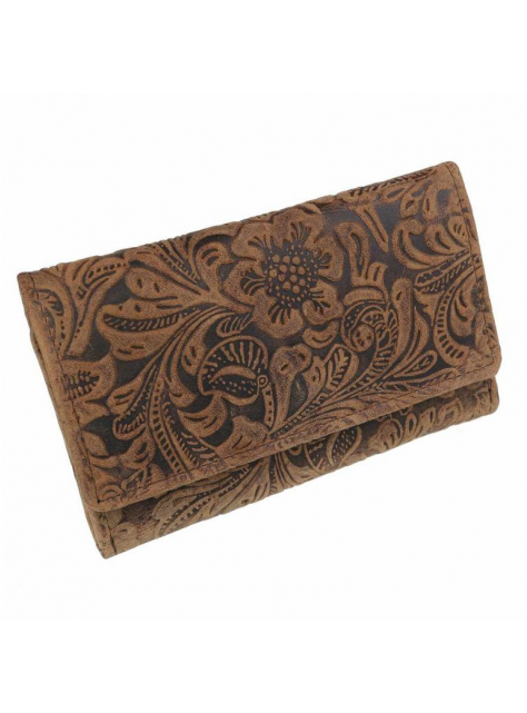 Hnedá peňaženka s reliéfom kvetov, stredná 15 kariet