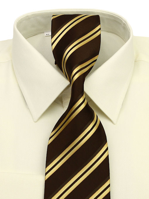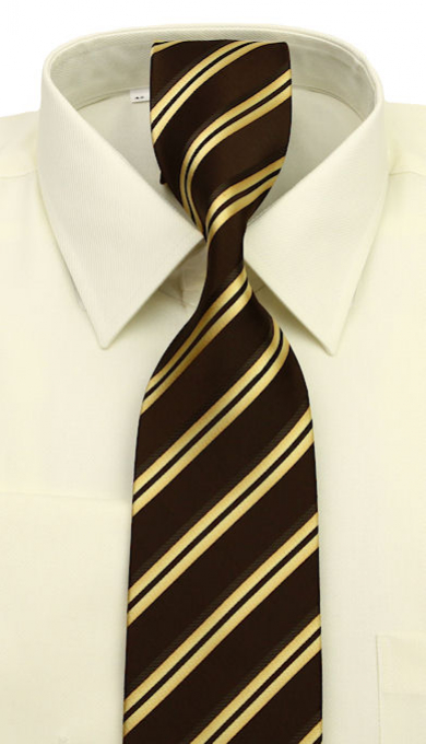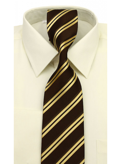 Kravata ORSI hnedá so žlto-zlatistými prúžkami 7 cm