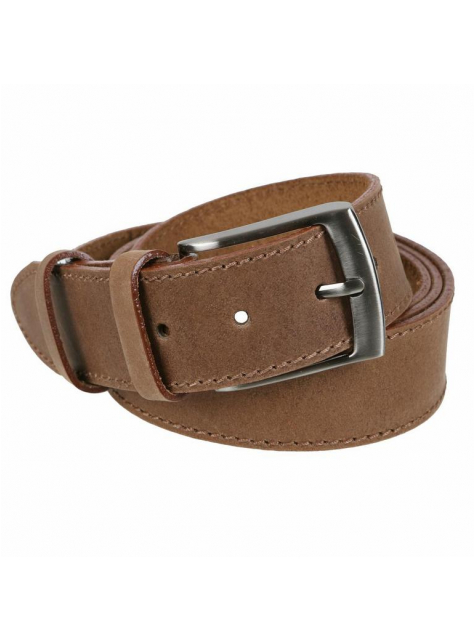 Kožený remeň - šírka cca 3,8 cm, hrubšia koža (0,3 mm) vo veľmi poddajnom odľahčenom spracovaní, povrch hladko brúsený, matný, okraje so štepovaním hnedou niťou