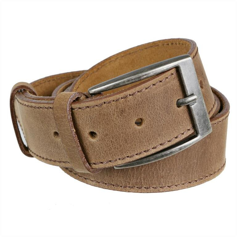 Kožený opasok zn. MERCUCIO - remeň z masívnej poddajnej kože v brúsenej rustikálnej úprave s okrajovým prešívaním. Skracovateľný na požadovanú dĺžku. Masívnejšia pracka na strmeň, prevedenie šedostrieborné satinované. Vhodný do džínsov aj nohavíc.