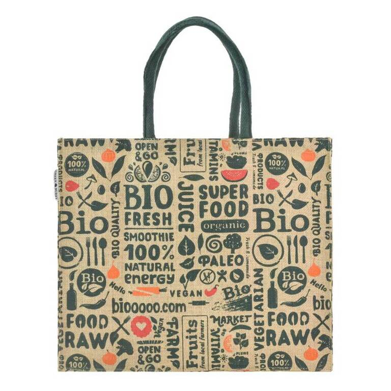 Nákupná taška zn. GreenBurry zo 100% prírodnej juty - vlákno vysoko a dlhodobo odolné, pevné (pevnejšie ako bavlnenené vlákno). Juta disponuje UV ochranou, odolnosťou voči nízkym teplotám, antistatickými vlastnostmi, odolná voči plesniam - dokáže výborne odolať všetkým rôznym mikroorganismom, jej využitie prispieva k ochrane životního prostredia - 100% rozložitelná.