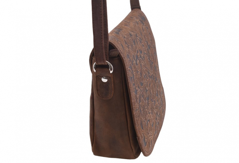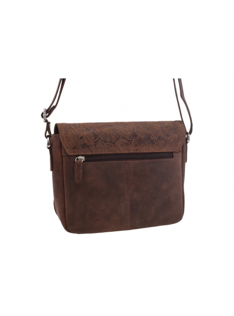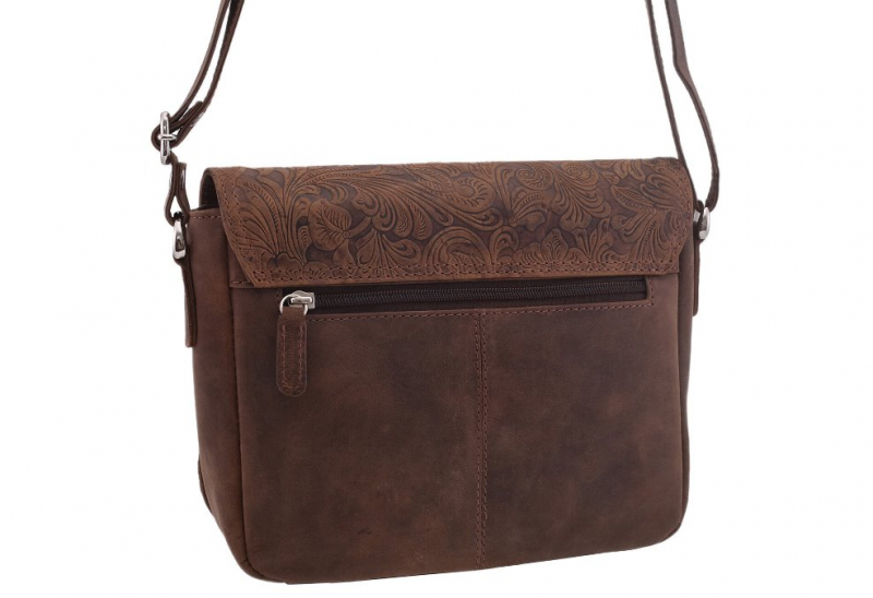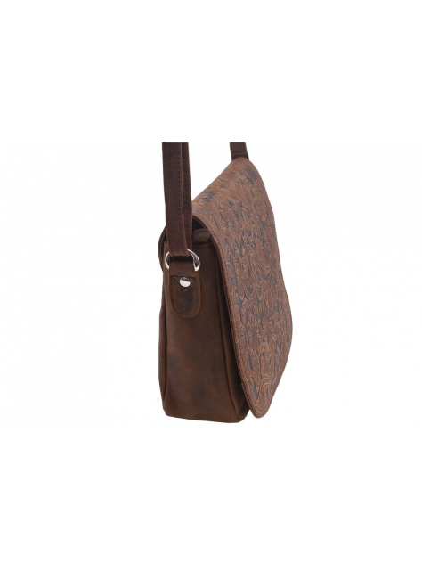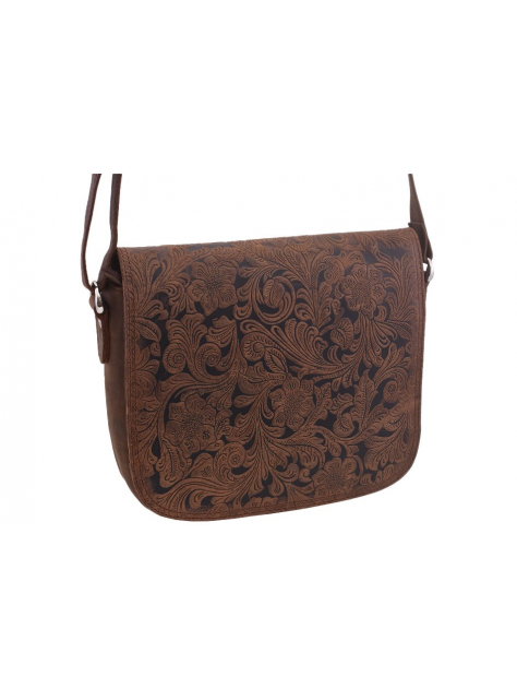 Kabelka kožená s kvetinovým motívom 24x22 hnedá