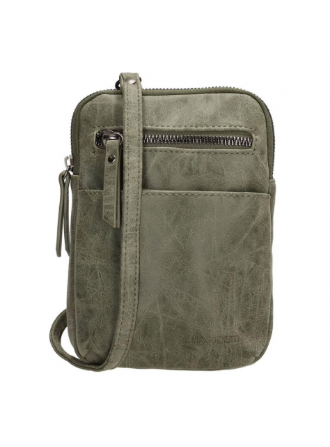 Dámska crossbody kabelka - taštička na opasok ENRICO BENETTI v olivovo-zelenej jemne mramorovanej úprave. Vyrobená z príjemného zmäkčeného materiálu, povrch s efektom brúsenej kože. Hrany vytvarované do oválu. Dominujúce výrazné lesklé zipsy a karabinky farby tmavého hematitu. Vyhovuje príručným drobnostiam mobil, peňaženka a pod., dobre prispôsobíteľná vnútornému obsahu.