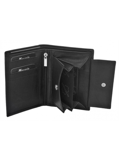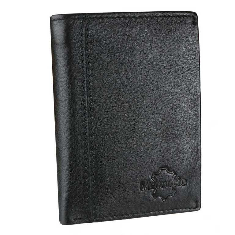 Čierna pánska peňaženka MERCUCIO v elegantnom prevedení s priestorom pre 4 karty, doklady, mincovníkom a 2 priehradkami na bankovky.