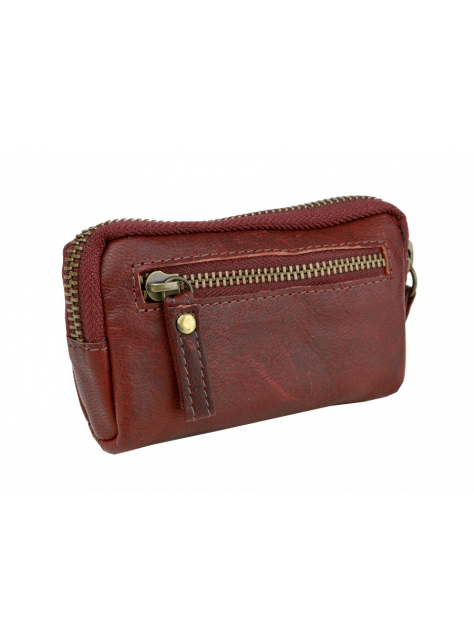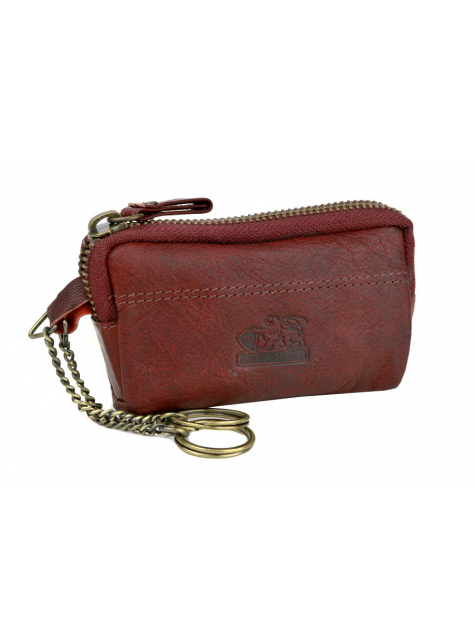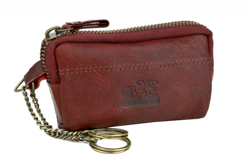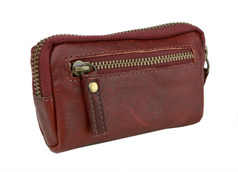 Kožené puzdro s krúžkami na kľúče a uzatváraním na zips.