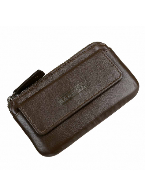 Kožená kľúčenka - puzdro na kľúče obsahuje vo vnútri 2 kovové krúžky na kľúče, vonkajší malý priečinok (na mince, žetóny a pod.). Uzatváranie na zips, vonkajší priečinok kovovým patentom.