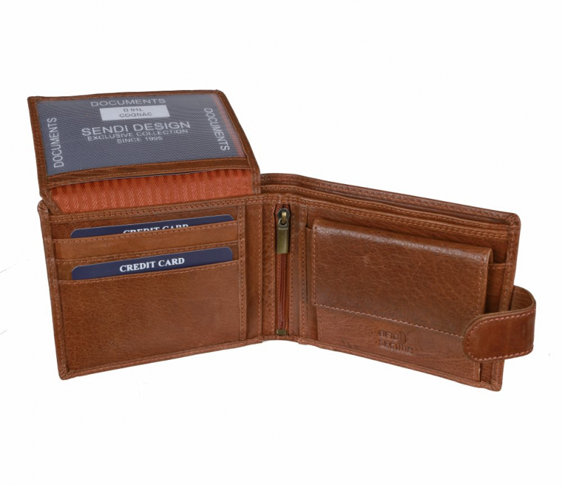 Ponúkame Vám pánsku koženú peňaženku zn. SENDI, ktorá ponúka skvelý pomer kvality a ceny a bezpečnostnú ochranu kariet RFID. Peňaženka jednoduchého a prehľadného typu s množstvom priehradok poskytuje dostatočný priestor pre bankovky (do 1000 €), karty a doklady nového aj starého typu.