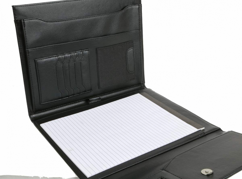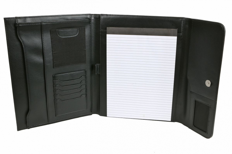 Syntetická koža (koženka), masívne prevedenie, polstrované (vystužené) steny. Dodávaná s poznámkovým notesom.
