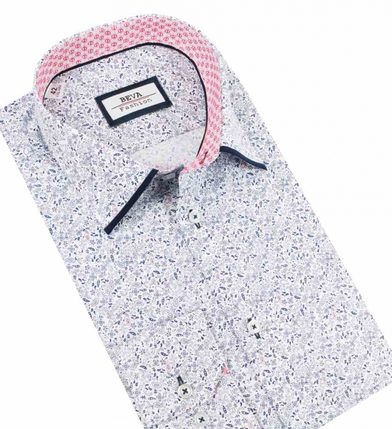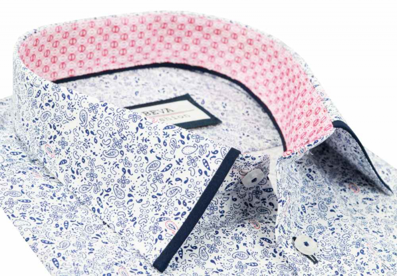Štýlová obleková košeľa s paisley vzorom a lemovaním, košeľa s dlhým rukávom a menším KENT golierom značky BEVA KLASIK. Trendová košeľa v klasickom strihu na výšku postavy 176 - 182 cm. Kvalitné šitie a priedušný materiál s minimálnou krčivosťou.