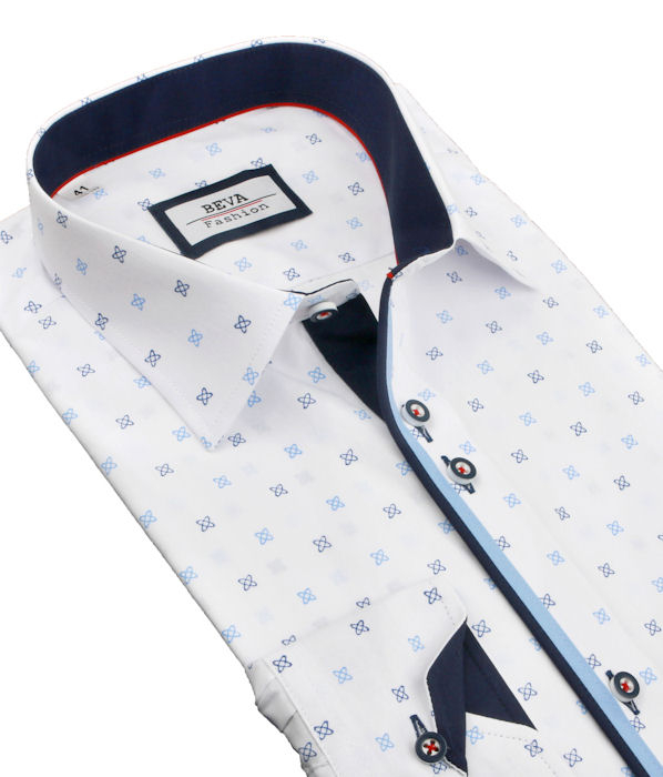 Bielo-modrá vzorovaná slim košeľa BEVA 2K130