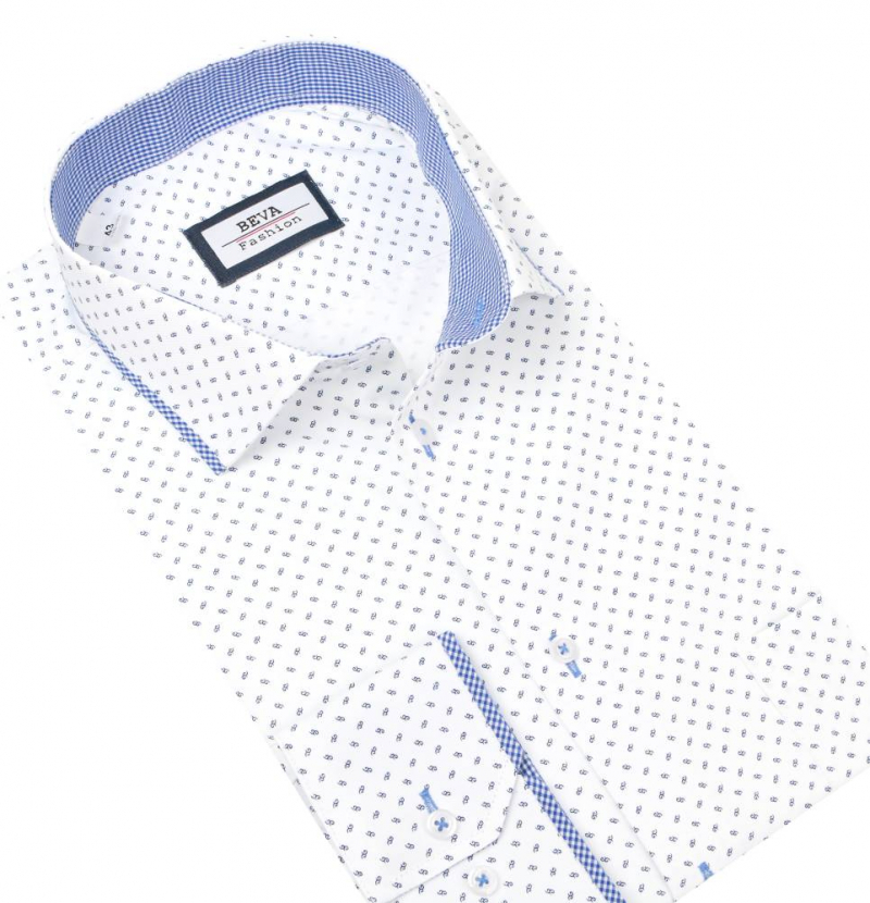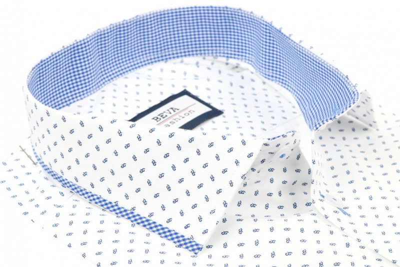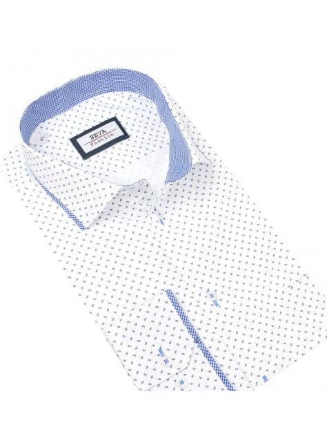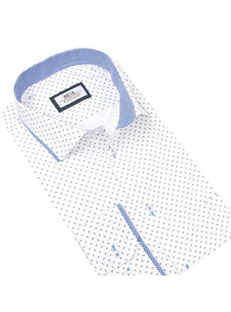 Košeľa dlhý rukáv BEVA SLIM bielo-modrá vzor