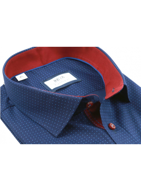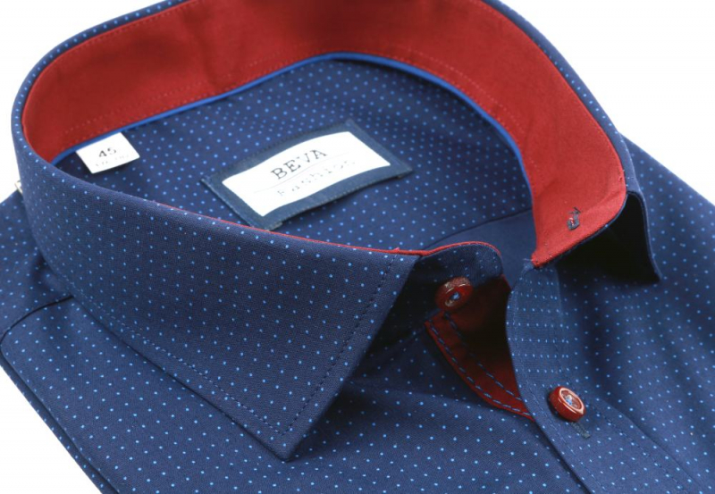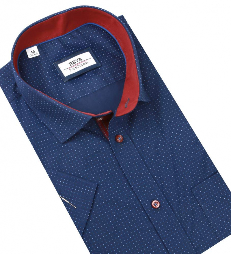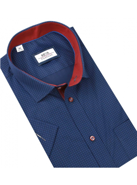 Pánska tmavomodrá košeľa s krátkym rukávom BEVA FASHION. Košeľa v klasickom strihu na výšku postavy 176 - 182 cm.