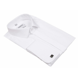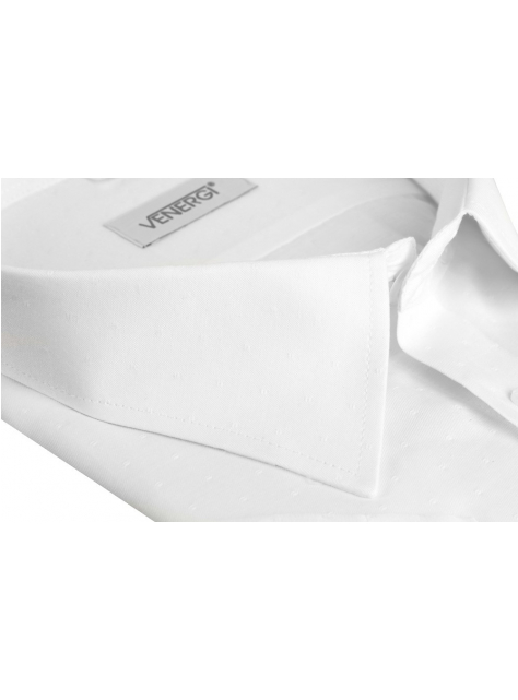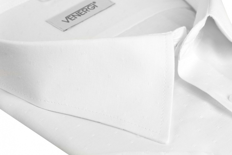Biela spoločenská košeľa VENERGI so skrytým zapínaním a manžetami na manžetové gombíky.