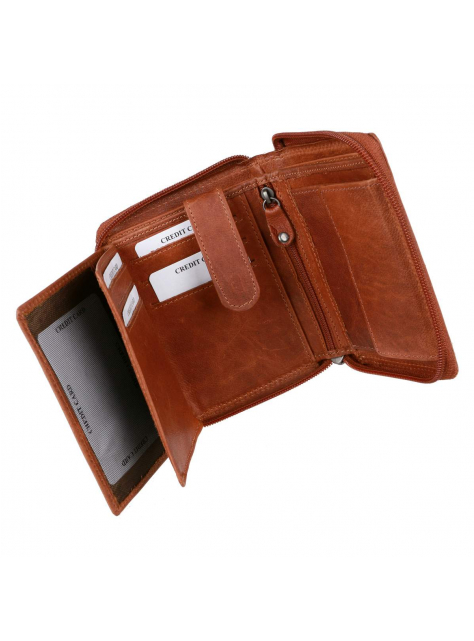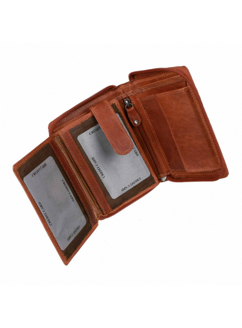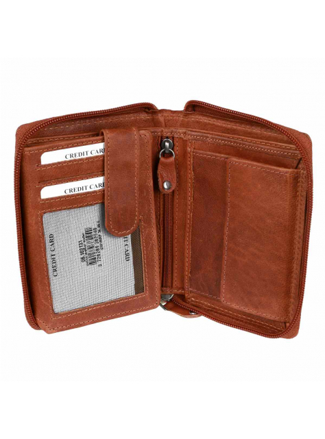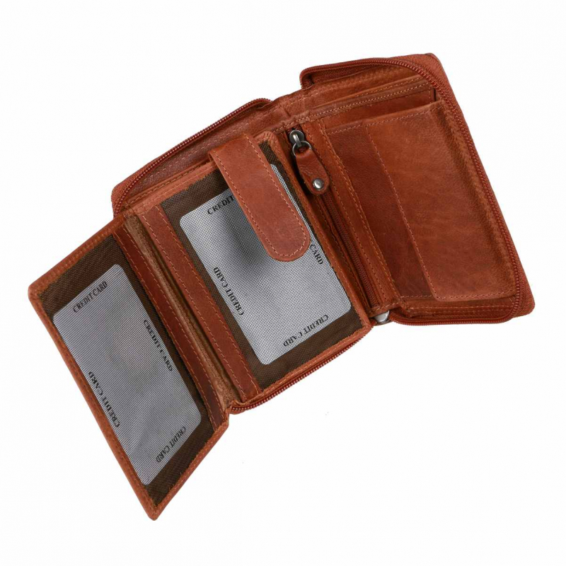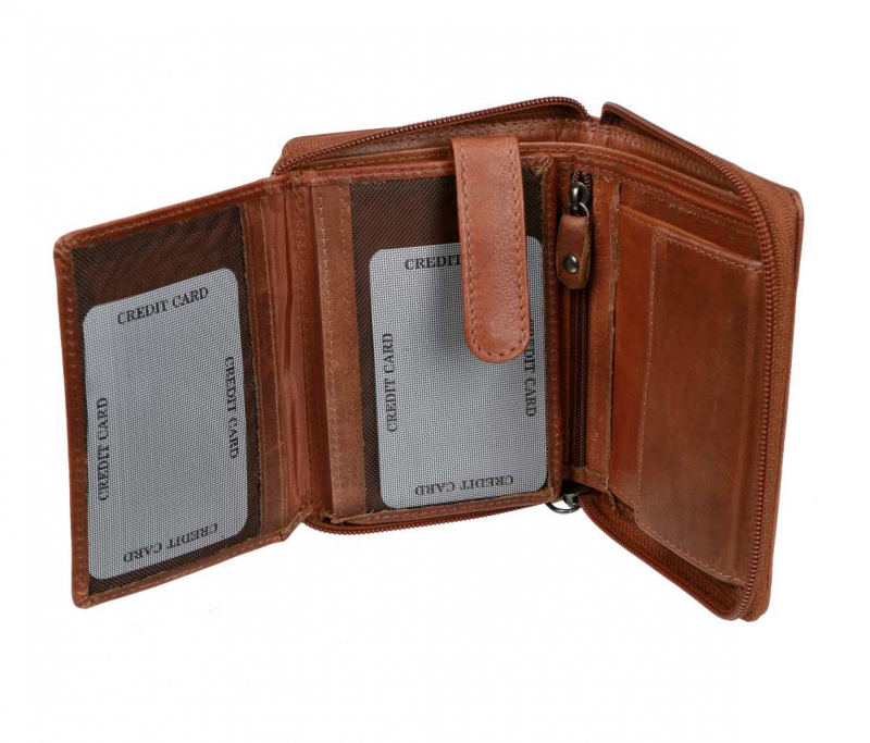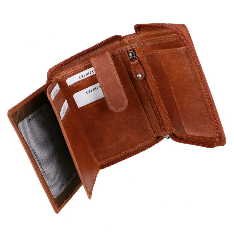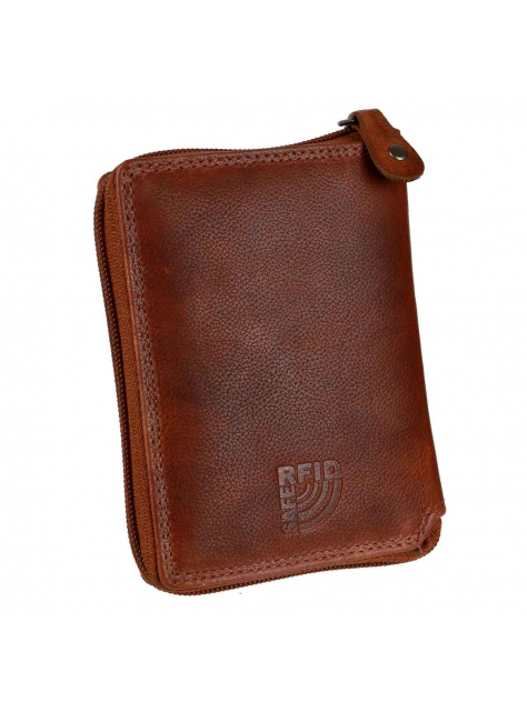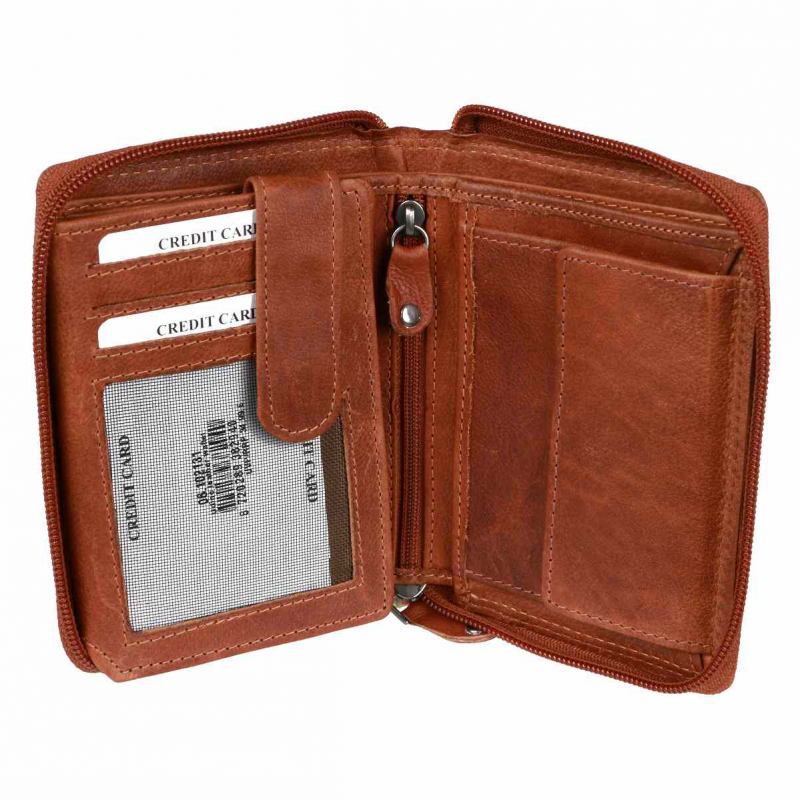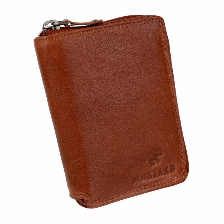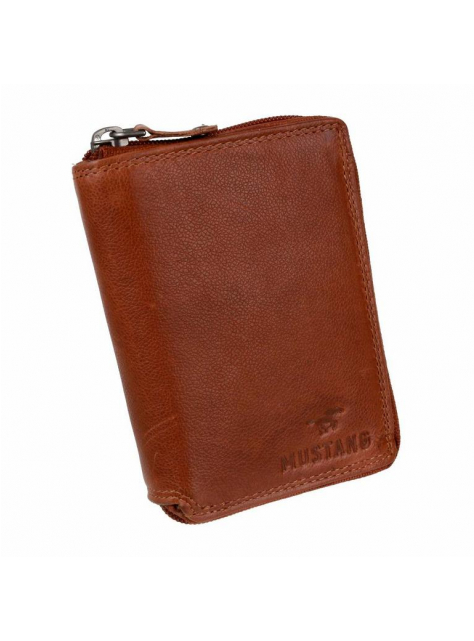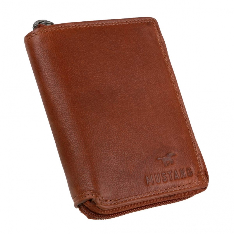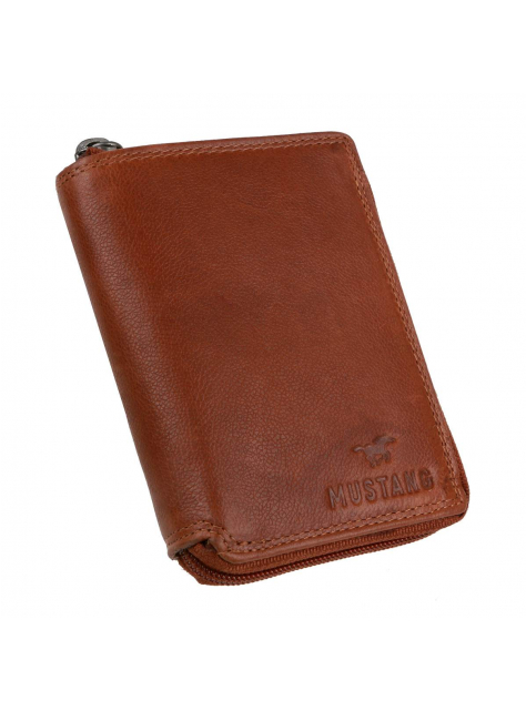 Kožená bezpečnostná peňaženka na zips MUSTANG, koňak