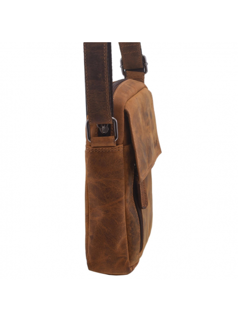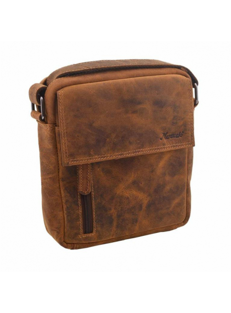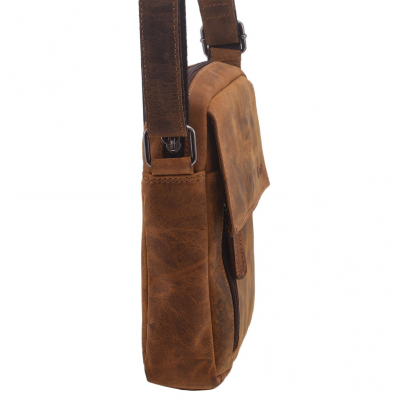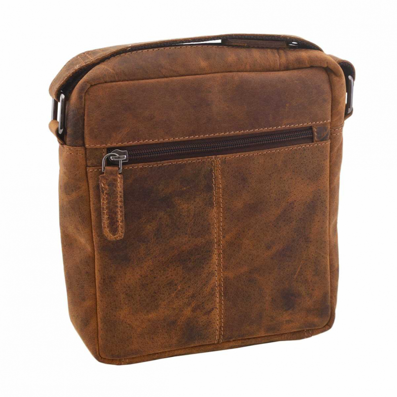 Kvalitná koža v jemne brúsenej úprave, masívna v odľahčenom prevedení, praktická a pohodlná na nosenie. Taška drží svoj tvar, hrany sú spevnené, steny tašky a poklop majú vnútornú miernu výstuž (polstrovanie). Vnútro hlavnej komory s veľkým vreckom na smartfón.