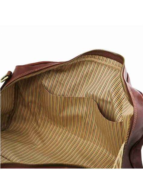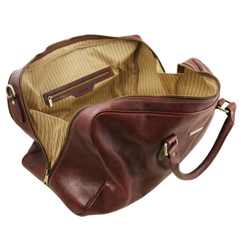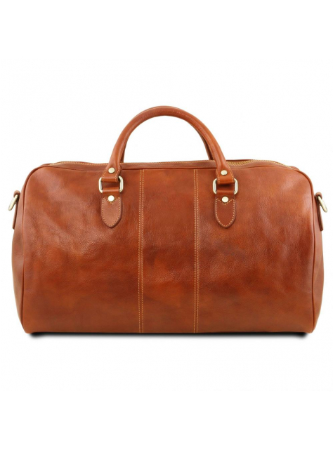 Kožená cestovná (víkendová) taška LISBONA od TUSCANY LEATHER väčšieho formátu. Mäkká povrchová štruktúra kože, komfortné nosenie.