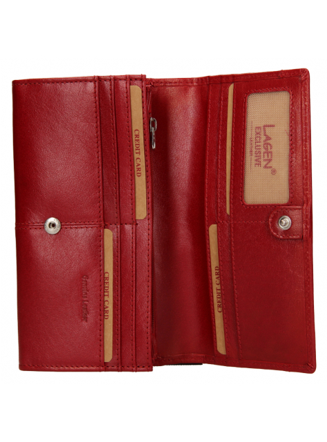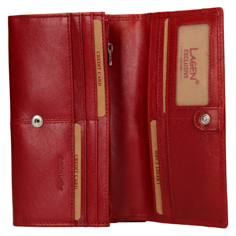 Kožená dámska peňaženka pre 16 kariet LAGEN červená