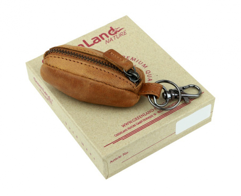 Kúčenka - kožené puzdro na kľúče s príveskom zn. GreenLand NATURE v prírodnej koži.