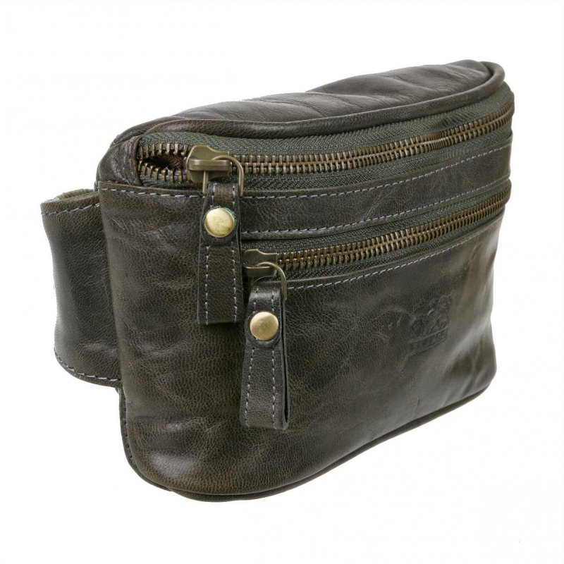 Kožená príručná taška značky BRANCO BERLIN - ľadvinka CABRITO s popruhom na pás v elegantnom spevnenom prevedení. Taška drží tvar aj bez vnútorného obsahu. Praktický príručný doplnok pre osobné veci. Zapínanie popruhu na zaklapovaciu pracku z tvrdého plastu. Farebné prevedenie - zelená olivová.