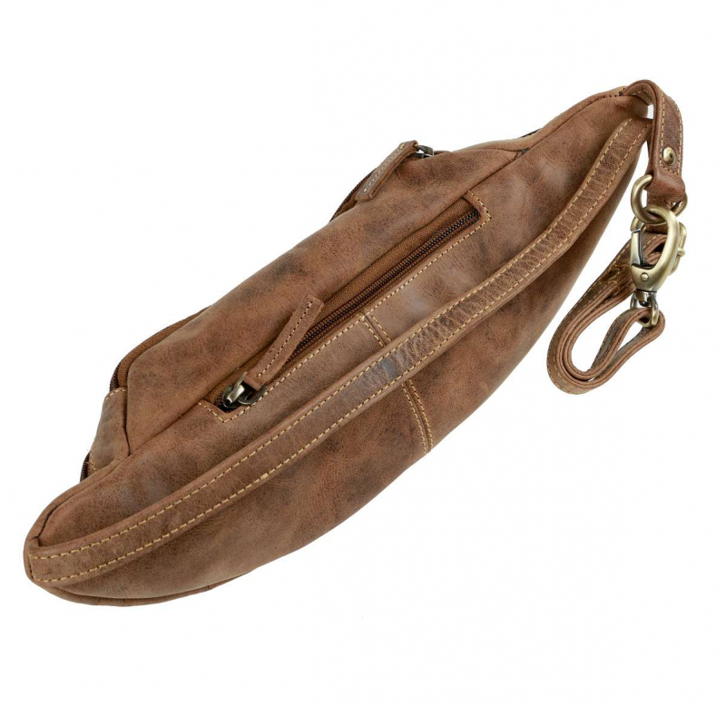 Kožená ľadvinka/ príručná taška na pás značky GreenBurry s nastaviteľným popruhom. Pre obvod pása od 83 do 115 cm.