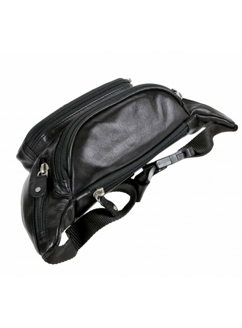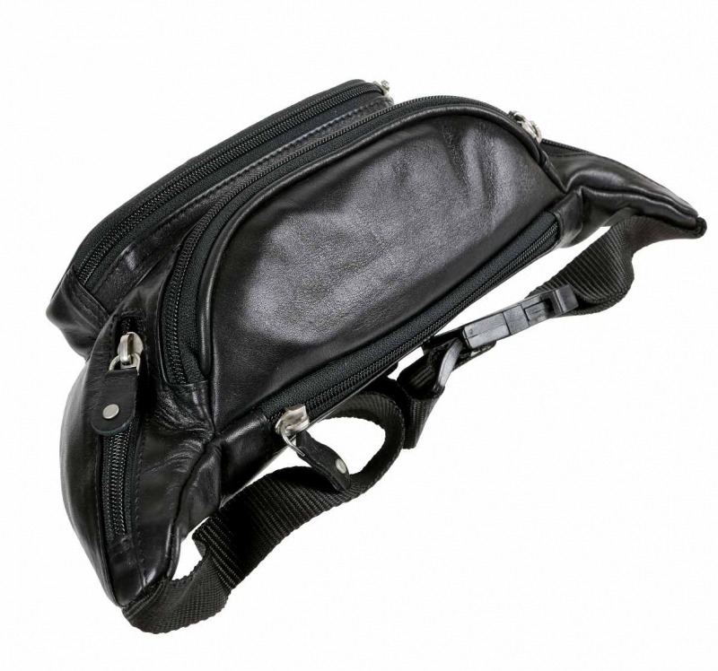 Kožená príručná taška - ľadvinka s prispôsobiteľným popruhom pre obvod pása od 80 do 105 cm. Praktický príručný doplnok pre osobné veci. Priestranný a obsahu prispôsobiteľný model. Zapínanie popruhu na zaklapovaciu pracku z tvrdého plastu.