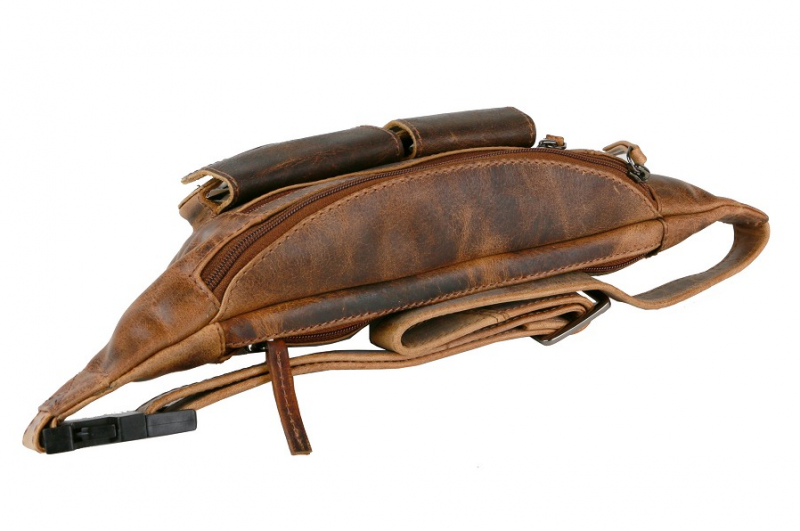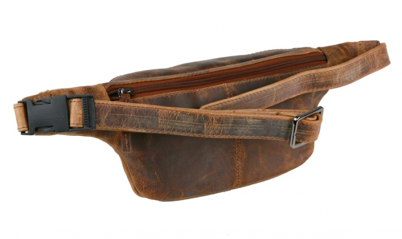 Kožená ľadvinka/ príručná taška na pás s nastaviteľným popruhom dĺžky cca 80 cm.