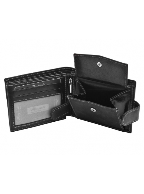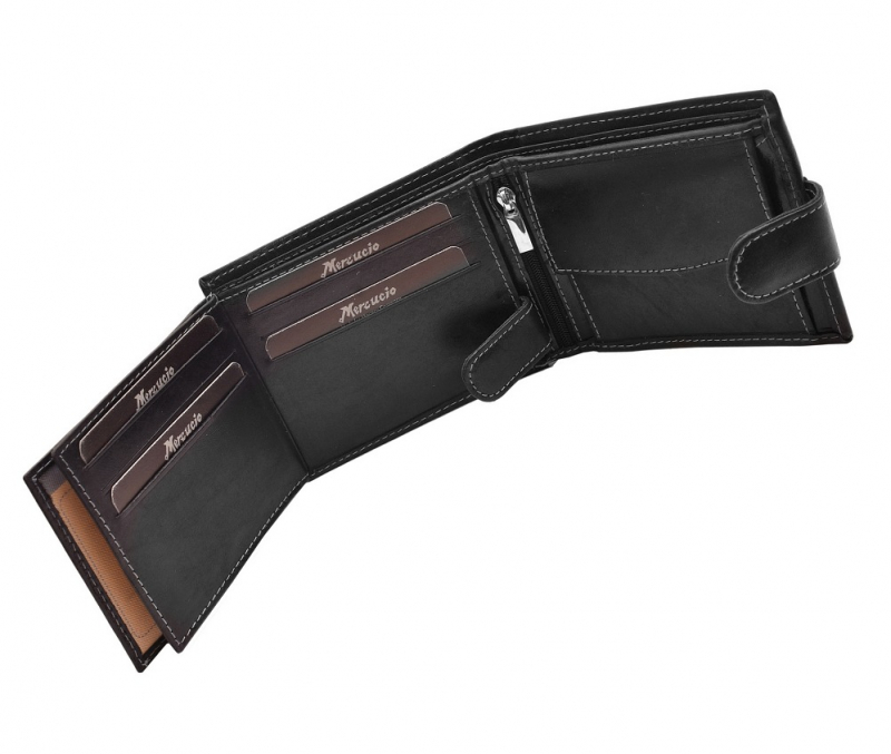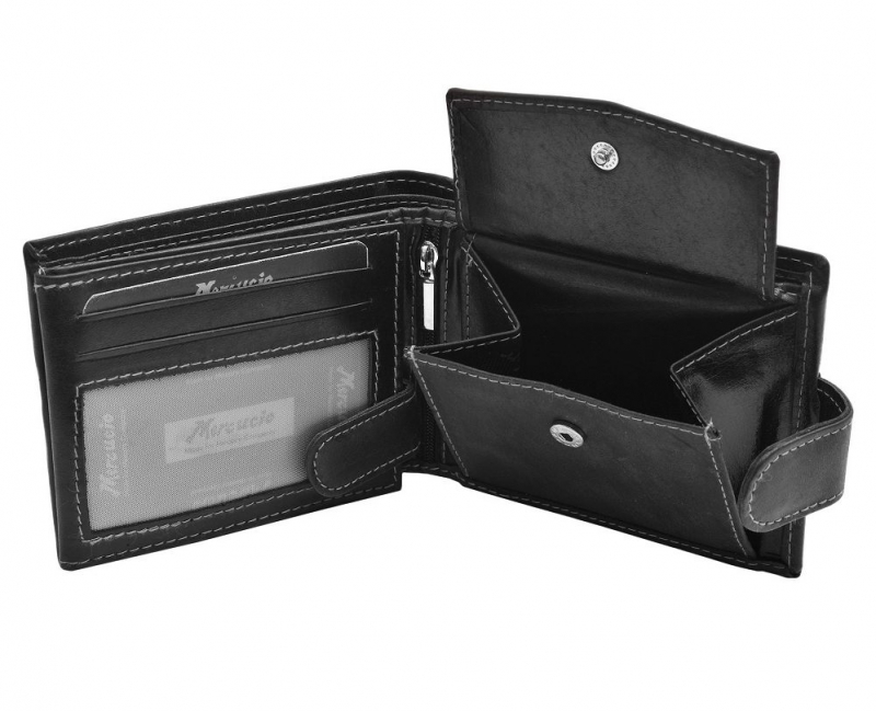 Elegantná pánska peňaženka značky MERCUCIO z pravej kože s okrajovým prešívaním. Vyhovuje aj staršiemu typu dokladov.