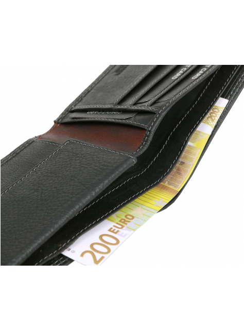 Ponúkame Vám pánsku peňaženku z hladkej čiernej kože zn. SENDI, ktorá ponúka skvelý pomer kvality a ceny. Peňaženka jednoduchého a prehľadného typu poskytuje dostatočný priestor pre bankovky (do 1000 €), 3 karty a doklady nového typu.